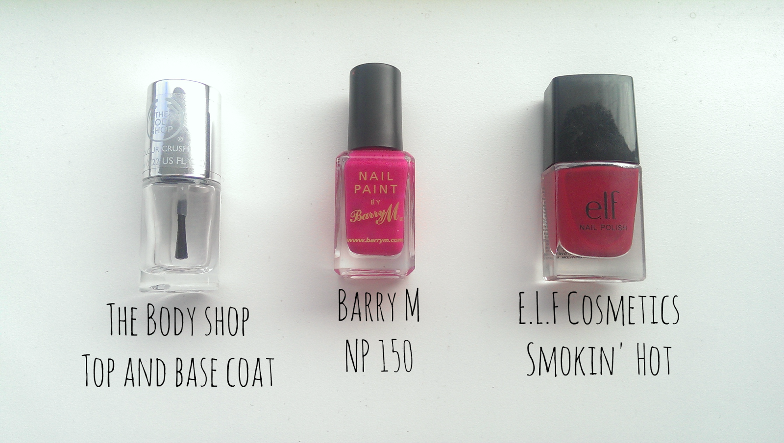 4) Draw a line across the nail, halfway up, with red nail varnish